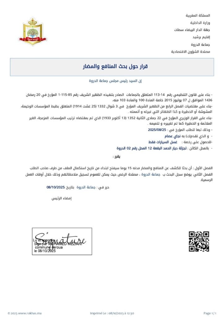 تنهي جماعة الدروة إلى علم العموم أنه قد تقرر الشروع في بحث المنافع والمضار المرتبطة بالموضوع، وذلك قصد دراسة آثاره وتقييم نتائجه قبل اتخاذ أي قرار نهائي في شأنه.